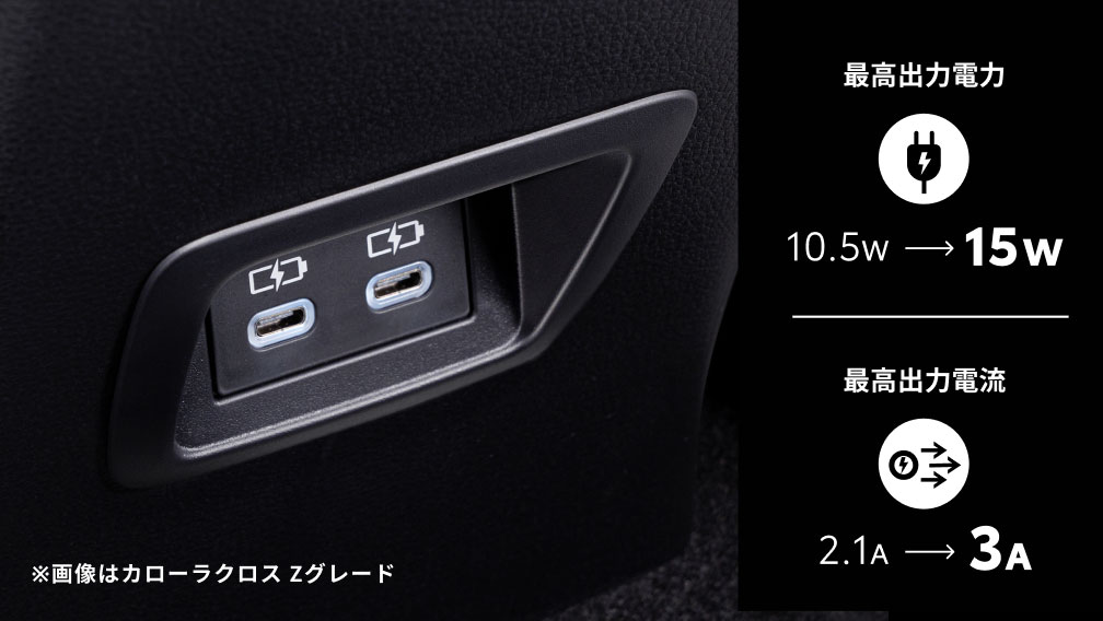 こんなメリットがあります: ● 出力アップ(2.1A→3A/10.5W→15W)で充電効率が向上 ● USB差込口のイルミネーションにより、夜間でも差し込みやすい