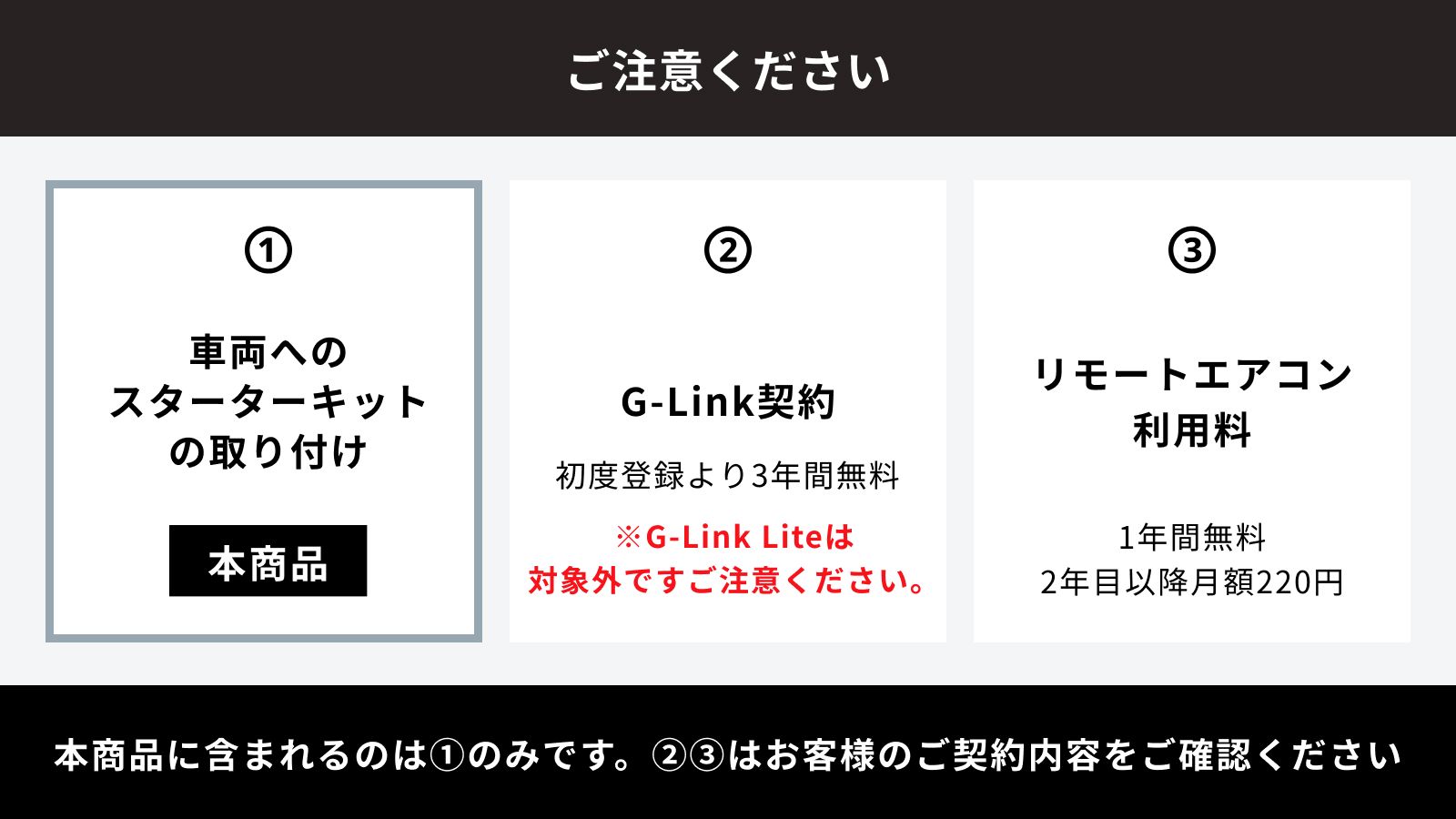 リモートエアコンをご利用いただくには、本商品以外にG-Link契約とリモートエアコン利用料が必要になります。