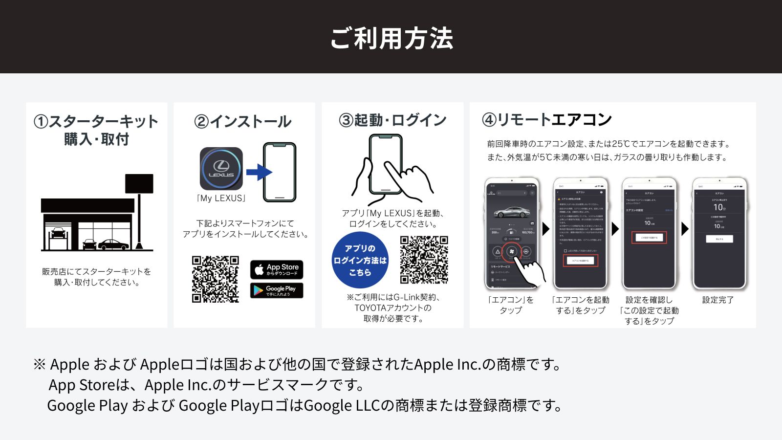 本商品施工後、My LEXUSアプリをインストール、ログイン後「エアコン」からご利用ください。