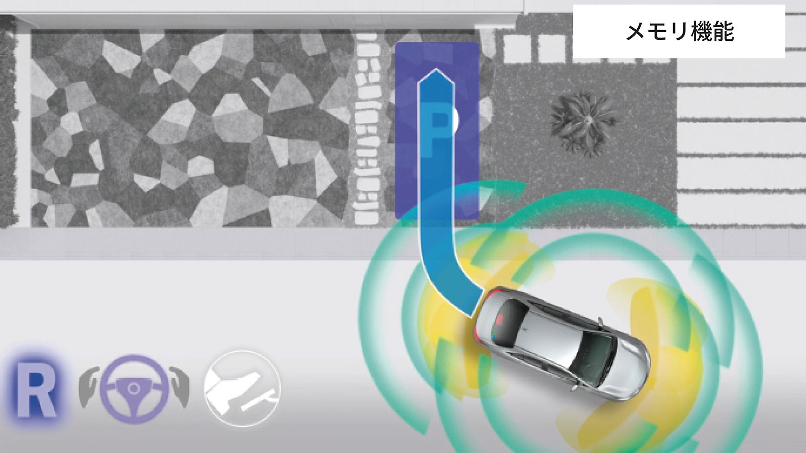 スイッチを押すだけで駐車操作を支援してくれるアドバンストパークがさらに進化。並列駐車においては従来のバック駐車に加え、前向き駐車、バック出庫、前向き出庫が可能になりました 。 ステアリング、アクセル 、ブレーキ、シフトの全操作をクルマが支援してくれるため、安心してラクに停められます。また 、カメラやソナーによって、周囲を監視しながら駐車を支援。障害物を検知した場合には警報を鳴らし、ブレーキ制御を行うことで接触回避を支援します。