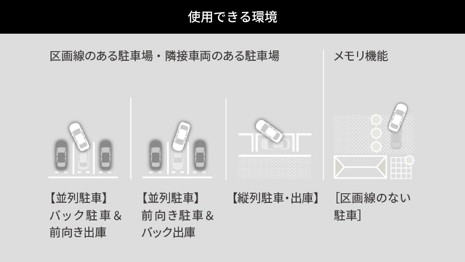 ※アドバンストパークは、あくまで運転を支援する機能です。システムを過信せず、必ずドライバーが責任を持って周囲の状況を把握し、安全運転を心がけてください。 ※アドバンストパークは、駐車環境や周辺状況によっては使用できない場合があります。詳しくは販売店でご確認ください。 ※字光式ナンバープレートは装着できません。 ※施工に伴い、スマートキーの再登録が必要です。ご入庫いただく際は、予備を含め、お持ちのスマートキーを全て持参ください。