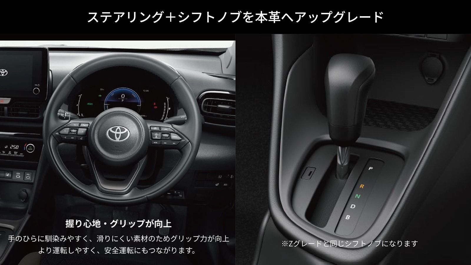 冷え込む季節に活躍するステアリングヒーターの後付けが可能です。 スイッチを押すだけで素早く温まり、冷たいステアリング(ハンドル)を握る冬場などに役立ちます。 また、ステアリングヒーターの設置に加えて、ステアリングホイールとシフトノブをトヨタ純正 本革巻きに交換いたします。 掌に馴染みやすく滑りにくい素材のためグリップ力が向上し、より運転しやすく安全運転にもつながります。