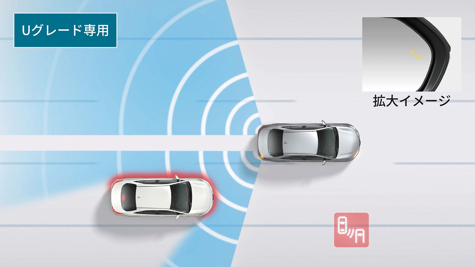 ・ブラインドスポットモニター[BSM] 車線変更時の危険をお知らせ。 走行中、ドアミラーでは確認しにくい後側方エリアに存在する車両に加えて、隣接する車線の最大約60m後方までモニターし、急接近してくる車両も検知します。車両を検知するとドアミラー内のインジケーターが点灯、車両を検知した状態でウインカーを操作するとインジケーターが点滅し、より注意を喚起します。 ・安心降車アシスト[SEA] 降車時の危険をお知らせ。 降車時、ブラインドスポットモニター[BSM]のセンサーを活用し、後方からの自転車を含む接近車両などを検知。開放後のドア、もしくは降車した乗員と衝突する可能性があるとシステムが判断した場合、ドアミラー内のインジケーターを点灯させ注意を促します。また、ドアを開けようとした場合は、ブザー、ドアミラー内のインジケーターの点滅、メーターの表示、音声通知で乗員に告知します。 ・パーキングサポートブレーキ(後方接近車両) 後方から接近する車両を検知し、衝突被害の軽減に寄与。 駐車場から後退する際に、パーキングサポートブレーキ(後方接近車両)は自車の左右後方から接近してくる車両をレーダーで検知。ドアミラー内のインジケーター点滅とブザーによりドライバーに注意を喚起します。